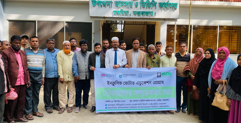 উল্লেখ্য, আইএসডিই কক্সবাজার জেলার চকরিয়া, পেকুয়া ও মহেশখালী উপজেলায় অন্তর্ভুক্তিমূলক ভোটার এডুকেশন প্রোগ্রামের আওতায় বিভিন্ন সচেতনতামূলক কার্যক্রম বাস্তবায়ন করছে, যার লক্ষ্য একটি গণতান্ত্রিক, শান্তিপূর্ণ, অংশগ্রহণমূলক ও অন্তভূক্তিমূলক নির্বাচন নিশ্চিত করা।