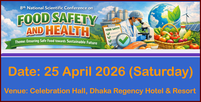 এগ্রিলাইফ২৪ ডটকম: Bangladesh Society for Safe Food (BSSF)-এর ৮ম জাতীয় সায়েন্টিফিক কনফারেন্স উপলক্ষে রেজিস্ট্রেশনের সময়সীমা বৃদ্ধি করা হয়েছে। অর্গানাইজিং কমিটির সিদ্ধান্ত অনুযায়ী, আগামী ২৫ এপ্রিল ২০২৬ তারিখে Dhaka Regency Hotel & Resort-এ অনুষ্ঠিতব্য এই গুরুত্বপূর্ণ কনফারেন্সে অংশগ্রহণের জন্য নিবন্ধনের শেষ সময় নির্ধারণ করা হয়েছে ৭ এপ্রিল ২০২৬।
