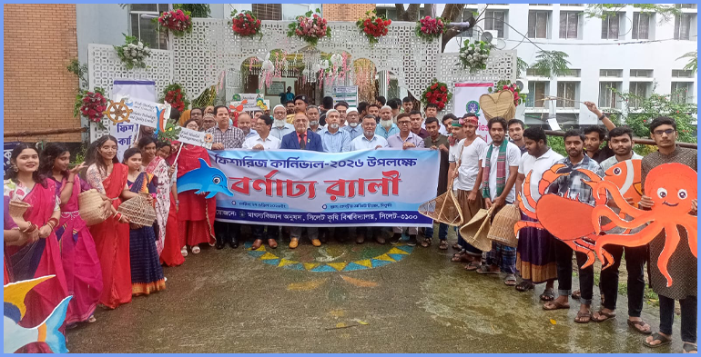 সিলেট কৃষি বিশ্ববিদ্যালয়ে (সিকৃবি) মাৎস্যবিজ্ঞান অনুষদের উদ্যোগে ‘ফিসারিজ কার্নিভাল ২০২৬’ শীর্ষক অনুষ্ঠানে প্রধান অতিথির বক্তব্যে তিনি এসব কথা বলেন।এ সময় তিনি বলেন , বিশ্বে বাংলাদেশ ইলিশ উৎপাদনে ১ম, অভ্যন্তরীন মুক্তজলাশয়ে মাছ উৎপাদনে ৩য়, তেলাপিয়া উৎপাদনে ৪র্থ ও অ্যাকুয়াকালচারে ৫ম। তবে আমাদের সামনে কিছু চ্যালেঞ্জও রয়েছে-জলবায়ু পরিবর্তন, পরিবেশ দূষণ, এবং প্রাকৃতিক দুর্যোগ। এসব চ্যালেঞ্জ মোকাবেলায় আমাদের সবাইকে একসঙ্গে কাজ করতে হবে। টেকসই মৎস্যচাষ নিশ্চিত করতে আমাদের পরিবেশ রক্ষা ও সচেতনতা বাড়াতে হবে।