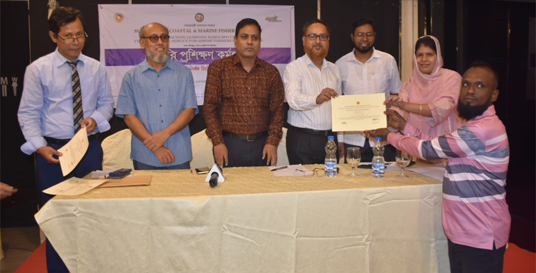 আজ শনিবার ২৭ সেপ্টেম্বর রাজধানী বনানীর গ্যালেসিয়া হোটেল অ্যান্ড রিসোর্ট লিমিটেডে অনুষ্ঠিত এক কর্মশালায় দেশের খ্যাতনামা একোয়াকালচার বিশেষজ্ঞরা প্রযুক্তিভিত্তিক চিংড়ি চাষের নানা বিষয়গুলি তুলে ধরেন। মৎস্য ও প্রাণিসম্পদ মন্ত্রণালয়ের মৎস্য অধিদপ্তরের আওতাধীন এ কর্মশালা বাস্তবায়ন করছে এগ্রো সলিউশন। খ্যাতনামা একোয়াকালচার বিশেষজ্ঞদের অংশগ্রহণে আয়োজিত এ কর্মশালা চিংড়ি খামারিদের জন্য নতুন দিগন্ত উন্মোচন করেছে।