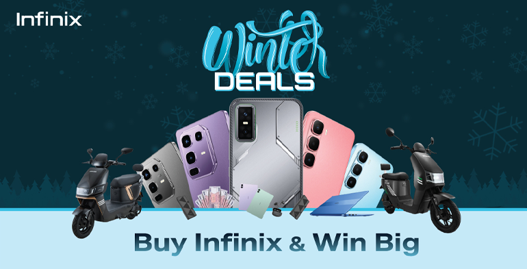 ১ নভেম্বর থেকে ৩০ নভেম্বর ২০২৫ পর্যন্ত চলবে এই বিশেষ ক্যাম্পেইন। দেশের যেকোনো ইনফিনিক্স অফিসিয়াল আউটলেট থেকে ইনফিনিক্স হট ৬০ সিরিজ, নোট ৫০ সিরিজ, অথবা জিটি ৩০ সিরিজ-এর যেকোনো মডেল ক্রয় করলেই গ্রাহকরা অংশ নিতে পারবেন "উইন্টার ডিলস" ড্র-এ। সেখানে ভাগ্যবান ক্রেতারা পেতে পারেন আকর্ষণীয় ক্যাশব্যাক, ইনফিনিক্সের স্মার্টফোন, ট্যাব, ল্যাপটপ, এমনকি রিভো ইলেকট্রিক গাড়ি পর্যন্ত জিতে নেওয়ার সুযোগ।