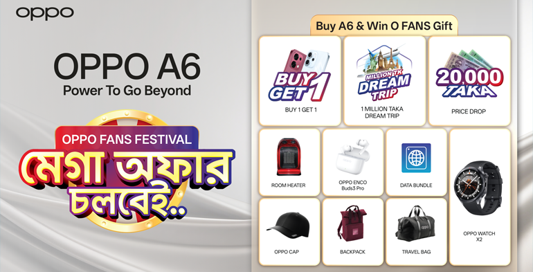Adding to the excitement, customers who purchase the OPPO A6 during the O Fans Festival will get the chance to participate in the O' Fans Festival Lottery Offer, featuring exciting rewards such as a Million Taka Dream Trip, Buy One Get One, OPPO Enco Buds3 Pro, OPPO Watch X2, Room Heater, or a sure-shot Winter Hoodie guaranteed for every participant. This festival celebration makes the OPPO A6 not only a powerful choice but also a rewarding one for young users across the country.