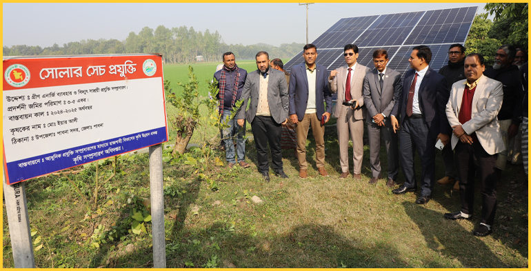 মোঃ গোলাম আরিফ: কৃষি সম্প্রসারণ অধিদপ্তরের মহাপরিচালক কৃষিবিদ মোঃ আব্দুর রহিম পাবনা জেলার সমসাময়িক কৃষি কার্যক্রম পরিদর্শন ও উপস্থিত কৃষকদের সাথে মতবিনিময়ে করেন। গতকাল ১০ জানুয়ারি ২০২৬ সকালে তিনি পাবনা সদর উপজেলার গয়েশপুর ব্লকে সোলার সেচ প্রযুক্তি, ফল বাগান, গম, পেঁয়াজ, সরিষা, পলিনেট হাউস, নার্সারিসহ বিভিন্ন উচ্চমূল্যের ফসলের মাঠ ঘুরে দেখেন ও সন্তোষ প্রকাশ করেন এবং স্থানীয় কৃষক-কৃষাণীদের সাথে উন্মুক্ত আলোচনায় অংশগ্রহণ করেন।