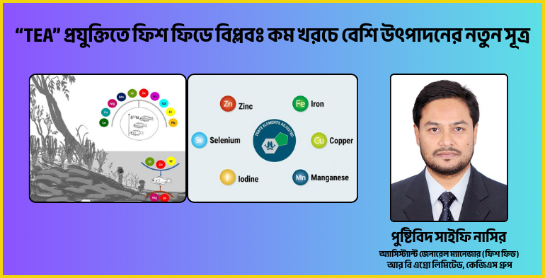 তিনি জানান, TEA পদ্ধতিতে প্রচলিত ফিড ফর্মুলেশনের বাইরে গিয়ে জিংক, আয়রন, কপার, ম্যাঙ্গানিজ ও সেলেনিয়ামের মতো অপরিহার্য ট্রেস উপাদানগুলোকে বিজ্ঞানভিত্তিকভাবে সমন্বয় করা হয়। এর ফলে মাছের বৃদ্ধি দ্রুত হয়, খাদ্য দক্ষতা বৃদ্ধি পায় এবং বর্জ্য উৎপাদন কমে যা সরাসরি চাষির লাভজনকতা বাড়াতে সহায়ক। একই সঙ্গে এটি অ্যান্টিবায়োটিক নির্ভরতা কমিয়ে পরিবেশবান্ধব ও টেকসই মাছ চাষ নিশ্চিত করতে পারে।