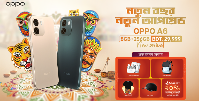 বাংলা নববর্ষ উদযাপন উপলক্ষে অপো এ৬ কেনার সাথেসাথেই ক্রেতারা ৯০ দিনের রিপ্লেসমেন্ট গ্যারেন্টি ও ২ বছরের ওয়ারেন্টি পাবেন; যা ব্যবহারকারীদের জন্য আরও বেশি নিশ্চয়তা ও দীর্ঘমেয়াদি নির্ভরযোগ্যতা নিশ্চিত করবে। পাশাপাশি, ক্রেতারা ও'লাইক এয়ারবাডস, এলিট ব্যাকপ্যাক, অপো টি-শার্ট ও অপো ক্যাপের মতো আকর্ষণীয় পুরস্কারও জিতে নেওয়ার সুযোগ পাবেন। এছাড়াও, টপপের মাধ্যমে সর্বোচ্চ ২০% ডাউন পেমেন্টে কার্ডলেস ইএমআই সুবিধা উপভোগ করার সুযোগ পাবেন।