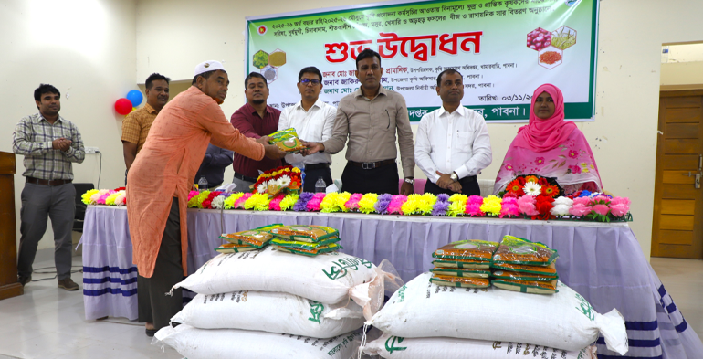 অনুষ্ঠানে রবি ২০২৫-২৬ মৌসুমে ফসলের আবাদ ও উৎপাদন বৃদ্ধির লক্ষ্যে পাবনা সদর উপজেলার দশটি ইউনিয়ন ও একটি পৌরসভার মোট ১০৪৮০ জন ক্ষুদ্র ও প্রান্তিক কৃষকের মাঝে বিনামূল্যে এ বীজ ও সার প্রদান করা হয়। এ সময় ৫৫০০ জন সরিষা চাষীর প্রতিজনকে ০১ কেজি বীজ, ১০ কেজি ডিএপি ও ১০ এমওপি সার; ৩০০০ জন গম চাষীর প্রতিজনকে ২০ কেজি বীজ, ১০ কেজি ডিএপি ও ১০ এমওপি সার; ৭০০ জন মসুর চাষীর প্রতিজনকে ০৫ কেজি বীজ, ১০ কেজি ডিএপি ও ০৫ এমওপি সার; ৬৫০ জন পেঁয়াজ চাষীর প্রতিজনকে ০১ কেজি বীজ, ১০ কেজি ডিএপি ও ১০ এমওপি সার; ৩০০ জন খেসারি চাষীর প্রতিজনকে ০৮ কেজি বীজ, ১০ কেজি ডিএপি ও ০৫ এমওপি সার; ২৫০ জন চিনা বাদাম চাষীর প্রতিজনকে ১০ কেজি বীজ, ১০ কেজি ডিএপি ও ০৫ এমওপি সার; ৪০ জন অড়হর চাষীর প্রতিজনকে ০২ কেজি বীজ, ০৫ কেজি ডিএপি ও ০৫ এমওপি সার এবং ৪০ জন সূর্যমুখী চাষীর প্রতিজনকে ০১ কেজি বীজ, ১০ কেজি ডিএপি ও ১০ এমওপি সার প্রদান করা হয়।