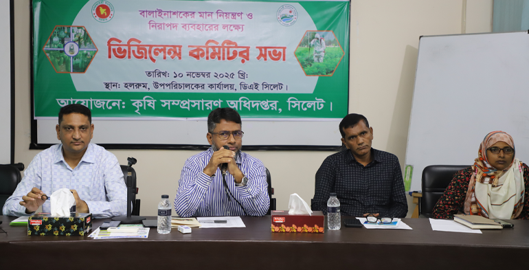 সভার প্রারম্ভে বালাইনাশকের মান নিয়ন্ত্রণ ও নিরাপদ ব্যবহারের বিষয়ে প্রবন্ধ উপস্থাপনা করেন-সিলেট কৃষি সম্প্রসারণ অধিদপ্তরের অতিরিক্ত উপপরিচালক (পিপি) কৃষিবিদ মোহাম্মদ আনিছুজ্জামান। এছাড়াও উপস্থিত ছিলেন জেলা প্রশিক্ষণ অফিসার কৃষিবিদ দীপক কুমার দাস ও অতিরিক্ত উপপরিচালক (উদ্যান) কৃষিবিদ তামান্না নাহার।