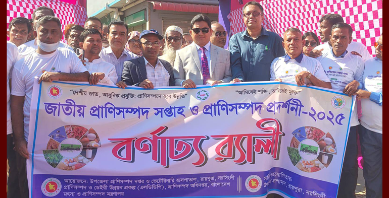 এগ্রিলাইফ২৪ ডটকম: দেশীয় জাত আধুনিক প্রযুক্তি: প্রাণিসম্পদে হবে উন্নতি "এই প্রতিপাদ্যকে সামনে রেখে ২৬ শে নভেম্বর (বুধবার) রায়পুরা পৌরসভা মাঠ চত্বরে অত্যন্ত জাঁকজমকপূর্ণভাবে প্রাণিসম্পদ সেবা সপ্তাহ ও প্রাণিসম্পদ প্রদর্শনী ২০২৫ এর শুভ উদ্বোধন অনুষ্ঠিত হয়েছে ।উক্ত অনুষ্ঠানে প্রধান অতিথি হিসেবে উপস্থিত ছিলেন জনাব মোঃ মাসুদ রানা, উপজেলা নির্বাহী অফিসার ,রায়পুরা ,নরসিংদী এবং অনুষ্ঠানটি সভাপতিত্ব করেন ডা:মুহাম্মদ কামরুল ইসলাম, উপজেলা প্রাণিসম্পদ অফিসার , রায়পুরা, নরসিংদী।