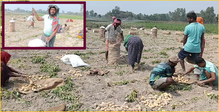 (বগুড়া) প্রতিনিধিঃ বগুড়ায় চলতি মৌসুমে লাভের আশায় আলু চাষ করে চরম লোকসানে পড়েছেন কৃষকরা। নতুন আলু বিক্রি হচ্ছে প্রতি কেজি মাত্র ৮ থেকে ৯ টাকায়। এর সঙ্গে প্রতি বস্তায় অতিরিক্ত খাজনা দিতে বাধ্য হচ্ছেন তারা। ফলে উৎপাদন ভালো হলেও ন্যায্য দাম না পাওয়ায় গত বছরের মতো এবারও বড় ধরনের ক্ষতির মুখে পড়েছেন আলু চাষিরা। আলুর ন্যায্যমূল্য নিশ্চিত ও বাজার স্থিতিশীল করতে দ্রুত কার্যকর পদক্ষেপ নেওয়ার দাবি জানিয়েছেন ক্ষতিগ্রস্ত আলুচাষী কৃষকরা।