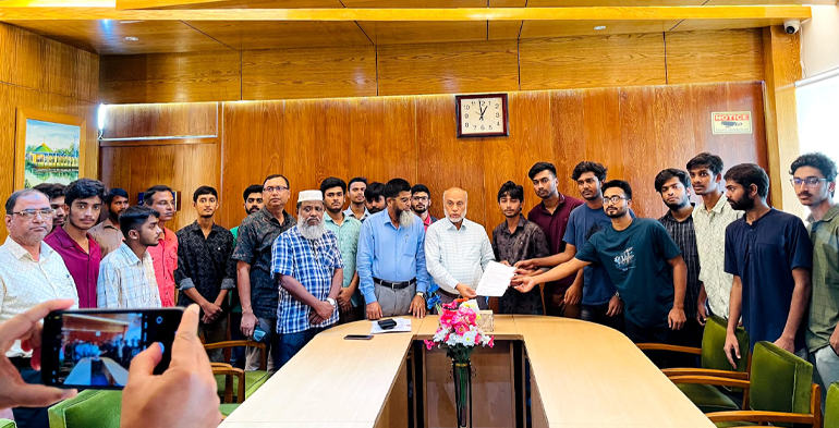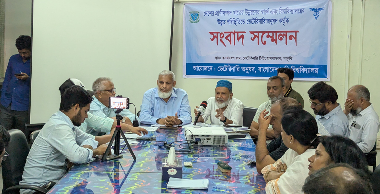 বাকৃবি প্রতিনিধি: বাংলাদেশ কৃষি বিশ্ববিদ্যালয়ের (বাকৃবি) পশুপালন অনুষদের শিক্ষকরা কম্বাইন্ড (বি.এসসি ইন ভেট সায়েন্স অ্যান্ড এএইচ) ডিগ্রির বিপক্ষে অবস্থান নিয়ে সোমবার (২৫ আগস্ট) সংবাদ সম্মেলন করেন। ওই সংবাদ সম্মেলনে আন্দোলনকারীদের ‘ফ্যাসিস্ট সমর্থনকারী’ হিসেবে উল্লেখ করায় ক্ষোভ প্রকাশ করে শিক্ষকদের বক্তব্যকে ‘অসত্য, বিভ্রান্তিকর ও উদ্দেশ্যপ্রণোদিত’ আখ্যা দেন আন্দোলনরত শিক্ষার্থীরা।
