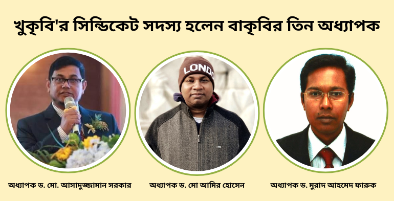 বাকৃবি প্রতিনিধি:খুলনা কৃষি বিশ্ববিদ্যালয়ের (খুকৃবি) সিন্ডিকেট কমিটির সদস্য হিসাবে বাংলাদেশ কৃষি বিশ্ববিদ্যালয়ের (বাকৃবি) তিনজন অধ্যাপক মনোনীত হয়েছেন। তারা হলেন খ্যাতিসম্পন্ন কৃষি বিজ্ঞানী ও জেনেটিক্স অ্যান্ড প্ল্যান্ট ব্রিডিং বিভাগের অধ্যাপক ড. মো আমির হোসেন, ইন্সটিটিউট অব এনভায়রনমেন্ট অ্যান্ড ডিজাস্টার ম্যানেজমেন্ট বিভাগের অধ্যাপক ড. মুরাদ আহমেদ ফারুক এবং কৃষি সম্প্রসারণ ও শিক্ষা বিভাগের অধ্যাপক ড. মো. আসাদুজ্জামান সরকার।