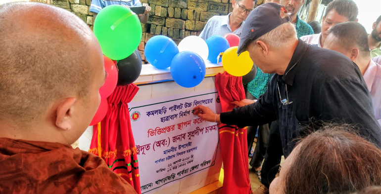 এগ্রিলাইফ২৪ ডটকম: আজ বিকেলে খাগড়াছড়ি জেলার কমলছড়ি পাইলট উচ্চ বিদ্যালয়ে ছাত্রাবাস নির্মাণের ভিত্তিপ্রস্তর স্থাপন অনুষ্ঠানের উদ্বোধন করেন পার্বত্য চট্টগ্রাম বিষয়ক মন্ত্রণালয়ের মাননীয় উপদেষ্টা জনাব সুপ্রদীপ চাকমা।