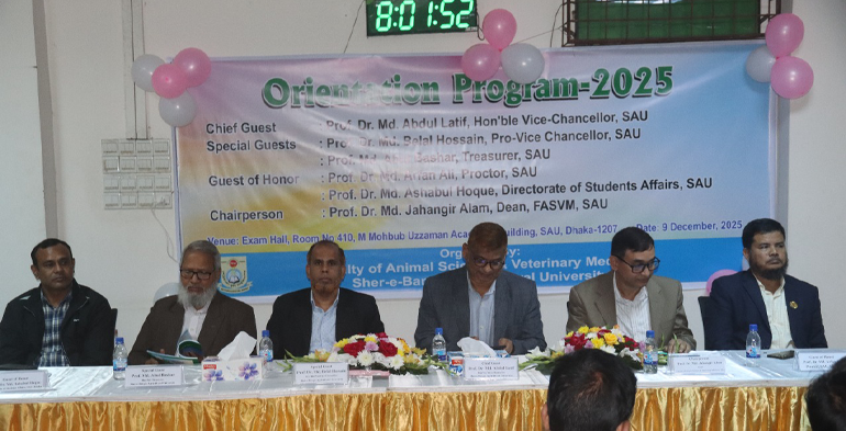 এগ্রিলাইফ২৪ ডটকম:অদ্য ০৯/১২/২০২৫ তারিখে শেরেবাংলা কৃষি বিশ্ববিদ্যালয়ের এনিম্যাল সায়েন্স এন্ড ভেটেরিনারি মেডিসিন (এএসভিএম) অনুষদের লেভেল-১, সেমিস্টার-১/২০২৫ শিক্ষার্থীদের ওরিয়েন্টেশন অনুষ্ঠিত হয়। লেভেল-১ এর শিক্ষার্থী জিসান মাহমুদের পবিত্র কোরআন তেলাওয়াতের মধ্য দিয়ে অনুষ্ঠানের শুভ সূচনা হয়। পরে নবাগত শিক্ষার্থীদের পক্ষ থেকে মোঃ নাবিব হোসেন এবং ফাহমিদা আক্তার তাঁদের অনুভূতি ও অভিমত ব্যক্ত করেন।