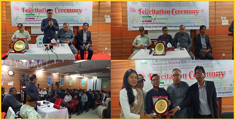 ক্যাম্পাস ডেস্ক:এক্সিম ব্যাংক কৃষি বিশ্ববিদ্যালয় বাংলাদেশ (ইবিএইউবি)-এর অডিটোরিয়ামে কৃষি অনুষদের ১৬তম ব্যাচের শিক্ষার্থী নিহারিকা দাস জাপানিজ সরকার কর্তৃক MONBUKAGAKUSHO) স্কলারশিপে কাগোশীমা বিশ্ববিদ্যালয়ে উচ্চশিক্ষা গ্রহণে মনোনীত হওয়ায় সংবর্ধণা অনুষ্ঠান অনুষ্ঠিত হয়। গতকাল সোমবার ৩০ মার্চ দুপুর ১২:০০ ঘটিকায় অনুষ্ঠিত অনুষ্ঠানে প্রধান অতিথি হিসেবে উপস্থিত ছিলেন এক্সিম ব্যাংক কৃষি বিশ্ববিদ্যালয় বাংলাদেশ (ইবিএইউবি)-এর উপাচার্য প্রফেসর ড. মো: সফিকুল বারী। বিশেষ অতিথি হিসেবে উপস্থিত ছিলেন কোষাধ্যক্ষ প্রফেসর ড. মোহাম্মদ নুরুল ইসলাম এবং রেজিস্ট্রার ক্যাপ্টেন (অব) বিএন প্রফেসর ড. মোঃ জিয়াউল আহসান। অনুষ্ঠানে সভাপতিত্ব করেন কৃষি অনুষদের ডীন ড. মো: মাহাবুবুর রহমান ।