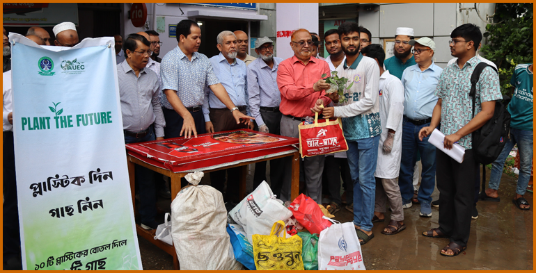 পরে ভিসি ড. আলিমুল ইসলাম বিশ্ববিদ্যালয়ের পরিবেশ ক্লাবের উদ্যোগে শিক্ষার্থীদের মাঝে ১০টি পরিত্যক্ত প্লাস্টিক বোতলের বিনিময়ে একটি করে গাছের চারা বিতরণ করেন।