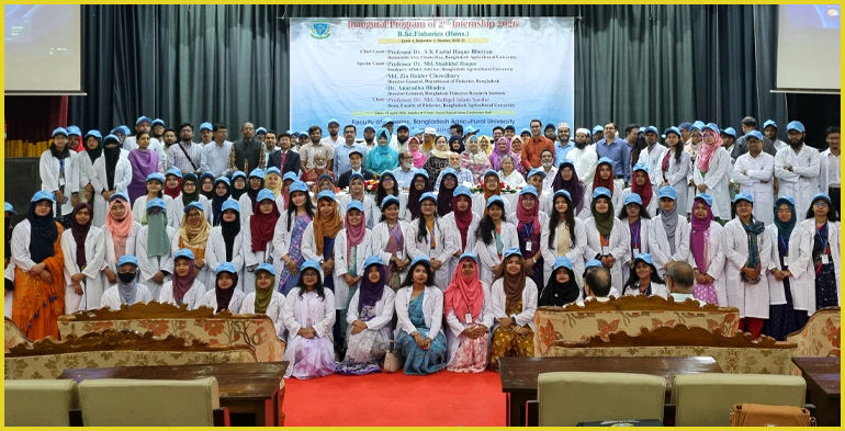 মাৎস্যবিজ্ঞান অনুষদের ডিন অধ্যাপক ড. মো. রফিকুল ইসলাম সরদারের সভাপতিত্বে অনুষ্ঠানে প্রধান অতিথি হিসেবে উপস্থিত ছিলেন বাকৃবি উপাচার্য অধ্যাপক ড. এ কে ফজলুল হক ভূঁইয়া। বিশেষ অতিথি হিসেবে বাংলাদেশ মৎস্য গবেষণা ইনস্টিটিউটের মহাপরিচালক ড. অনুরাধা ভদ্র, মৎস্য অধিদপ্তরের পরিচালক (অভ্যন্তরীন মৎস্য) ড. মো. মোতালেব হোসেন। অনুষ্ঠানে স্বাগত বক্তব্য প্রদান করেন ২য় ইন্টার্নশিপ ব্যবস্থাপনা সেলের সমন্বয়ক অধ্যাপক ড. মো. আলী রেজা ফারুক।
