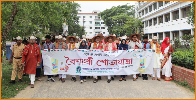 সিকৃবি প্রতিনিধিঃ সিলেট কৃষি বিশ্ববিদ্যালয় (সিকৃবি)-এ বর্ণাঢ্য আয়োজনে উদযাপিত হয়েছে বাংলা নববর্ষ ১৪৩৩। আজ ১৪ এপ্রিল (মঙ্গলবার) জাতীয় দিবস উদযাপন কমিটির উদ্যোগে দিনব্যাপী নানা কর্মসূচির মধ্য দিয়ে নববর্ষকে বরণ করে নেয় বিশ্ববিদ্যালয় পরিবার।