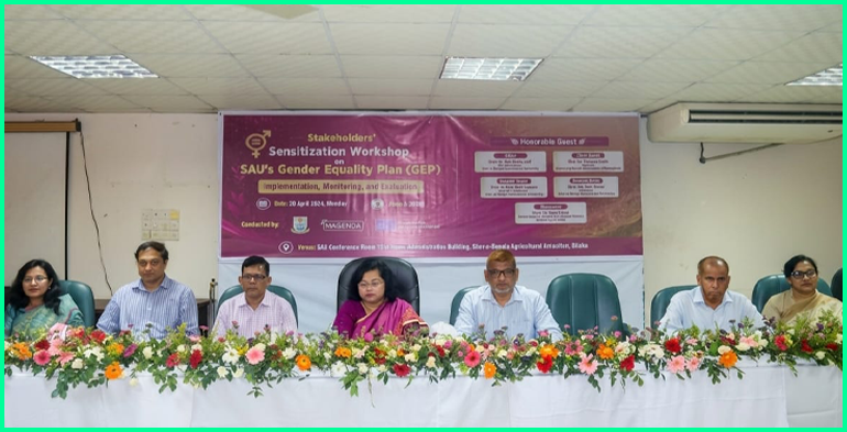 শেকৃবি প্রতিনিধি: রাজধানীর প্রাণকেন্দ্রে অবস্থিত শেরেবাংলা কৃষি বিশ্ববিদ্যালয়ে (শেকৃবি) “লিঙ্গ সমতা পরিকল্পনা বাস্তবায়ন, পর্যবেক্ষণ ও মূল্যায়ন” শীর্ষক একটি কর্মশালা অনুষ্ঠিত হয়েছে।