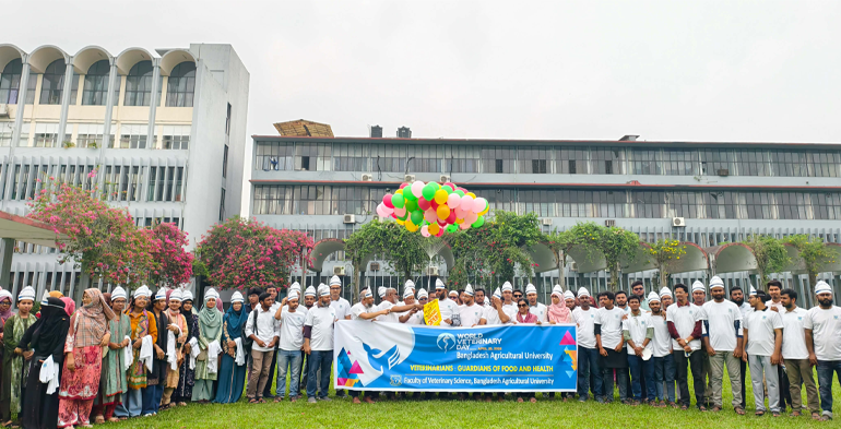 বাকৃবি প্রতিনিধিঃ"ভেটেরিনারিয়ানরা খাদ্য ও স্বাস্থ্যের অভিভাবক" এই স্লোগানকে সামনে বর্ণাঢ্য আয়োজনের মাধ্যমে বাংলাদেশ কৃষি বিশ্ববিদ্যালয়ে (বাকৃবি) বিশ্ব ভেটেরিনারি দিবস পালিত হয়েছে। শনিবার (২৫ এপ্রিল) সকাল ১০টায় বিশ্ববিদ্যালয়ে দিবসটি উপলক্ষে বর্ণাঢ্য এক র্যালির আয়োজন করে ভেটেরিনারি অনুষদ।