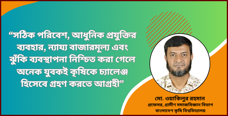 বাংলাদেশের জনসংখ্যার একটি বড় অংশই যুবসমাজ। বয়সসীমা নির্ধারণে ভিন্নতা থাকলেও সাধারণভাবে ১৮ থেকে ৩৫ বছর বয়সীদেরই যুবক হিসেবে ধরা হয়। তবে সবচেয়ে গুরুত্বপূর্ণ হলোএই যুবকদের মধ্যে বেকারত্বের হার প্রায় ২০ শতাংশ এবং উচ্চশিক্ষিতদের ক্ষেত্রে এই হার ১৩.৫৪ শতাংশ, যা নিঃসন্দেহে উদ্বেগজনক। এছাড়া প্রতি বছর প্রায় ১৫–১৬ লাখ মানুষ নতুন করে শ্রমশক্তিতে যুক্ত হচ্ছে, অথচ প্রচলিত চাকরির বাজারে তাদের জন্য পর্যাপ্ত কর্মসংস্থান তৈরি করা সম্ভব হচ্ছে না। ফলে আত্মকর্মসংস্থান এখন বাস্তবসম্মত বিকল্প হিসেবে উঠে আসছে, আর সেই ক্ষেত্রে কৃষি হতে পারে একটি সম্ভাবনাময় ক্ষেত্র।