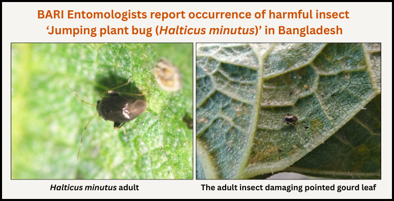 Agrilife24.com:The scientists of the Entomology Division of Bangladesh Agricultural Research Institute (BARI) first identified the harmful insect ‘Jumping plant bug (Halticus minutus Reuter)’ in Bangladesh. Scientists observed this species, which is a new exotic insect, in pointed gourd fields recently in Abdulpur, Jashore Sadar, Jashore, which was the first report of its occurrence in Bangladesh.