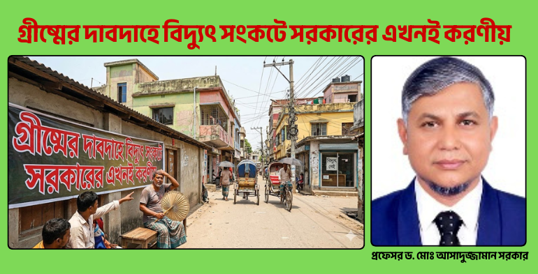 প্রফেসর ড. মোঃ আসাদুজ্জামান সরকার:নিরবচ্ছিন্ন বিদ্যুৎ সরবরাহ এখন শুধু একটি সেবা নয় বরং এটি অর্থনীতি, জনজীবন এবং সরকারের প্রতি জনগণের আস্থার কেন্দ্রীয় উপাদান। গ্রীষ্মের তীব্র তাপদাহে যখন বিদ্যুতের চাহিদা সর্বোচ্চ পর্যায়ে পৌছায় তখন লোডশেডিং শুধু ভোগান্তিই সৃষ্টি করে না বরং সরকারের সামগ্রিক উন্নয়ন কার্যক্রমের অর্জনকেও প্রশ্নবিদ্ধ করে। তাই এই মুহূর্তে সরকারের জন্য জরুরি, দ্রুত ও বাস্তবসম্মত কিছু পদক্ষেপ গ্রহণ করা।