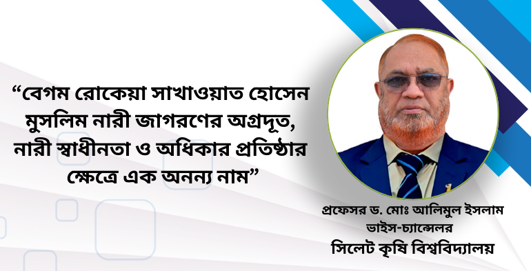 প্রফেসর ড. মোঃ আলিমুল ইসলাম: বেগম রোকেয়া সাখাওয়াত হোসেন মুসলিম নারী জাগরণের অগ্রদূত, নারী স্বাধীনতা ও অধিকার প্রতিষ্ঠার ক্ষেত্রে এক অনন্য নাম। বাঙালি মুসলিম সমাজে নারী অধিকারের দাবি তুলে ধরার প্রথম কন্ঠস্বর ছিলেন বেগম রোকেয়া। তিনি বাঙালি মুসলিম নারী জাগরণের অগ্রদূত হিসেবে যে দৃষ্টিভঙ্গি, সাহস ও প্রগতিশীল চিন্তার পরিচয় দিয়েছেন, তা আজও আমাদের জন্য অনুপ্রেরণার উৎস। সমাজের গোঁড়ামি, অশিক্ষা ও নারীর প্রতি বৈষম্যের বিরুদ্ধে তাঁর নিরলস সংগ্রাম আমাদের জন্য এক অনন্য দৃষ্টান্ত।